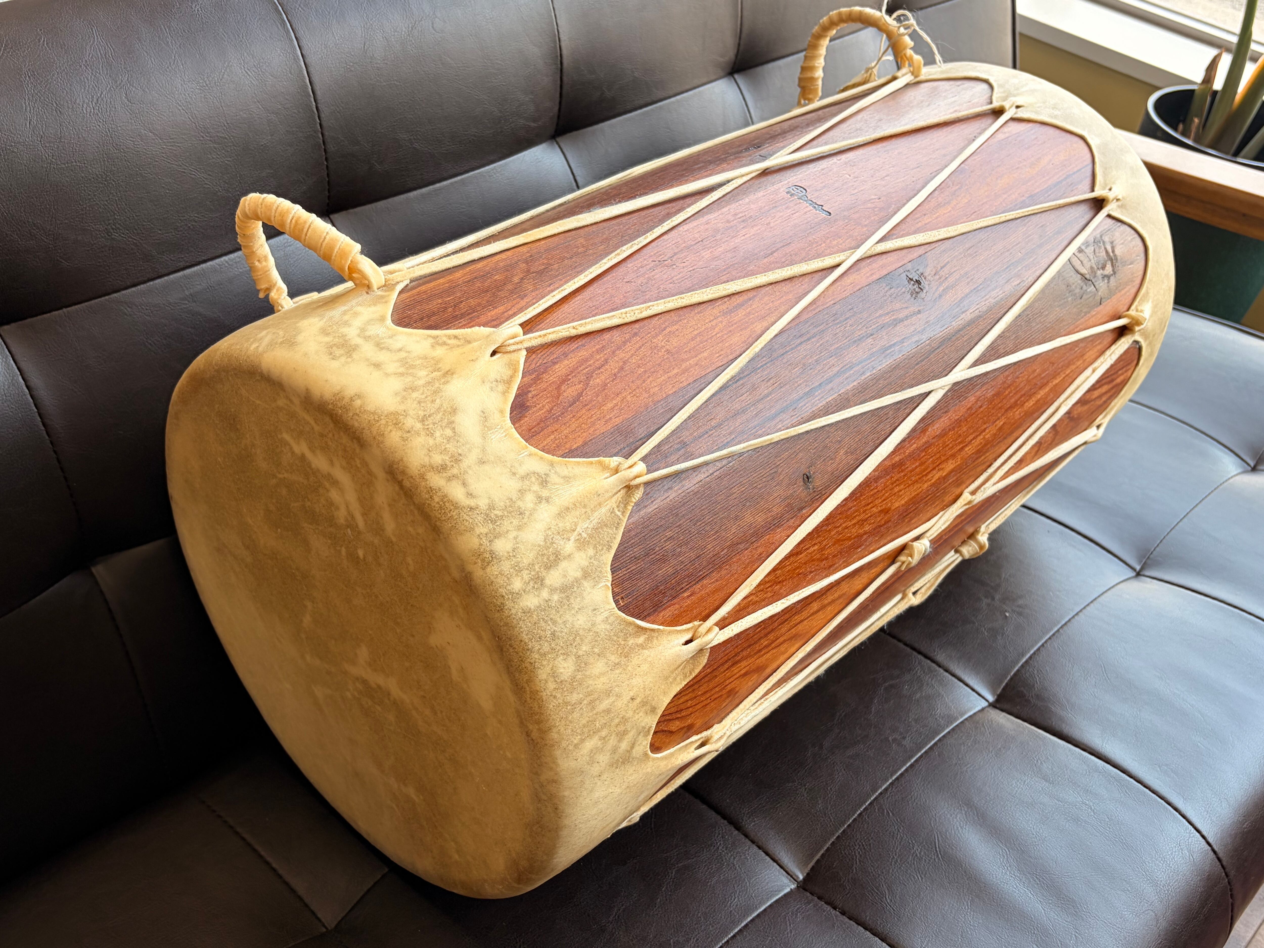 生皮から作られているため湿度や温度で音色が日々変わります。ご自身で温めたり湿らせることで変化させることもできますので、お好みのサウンドでお楽しみください。