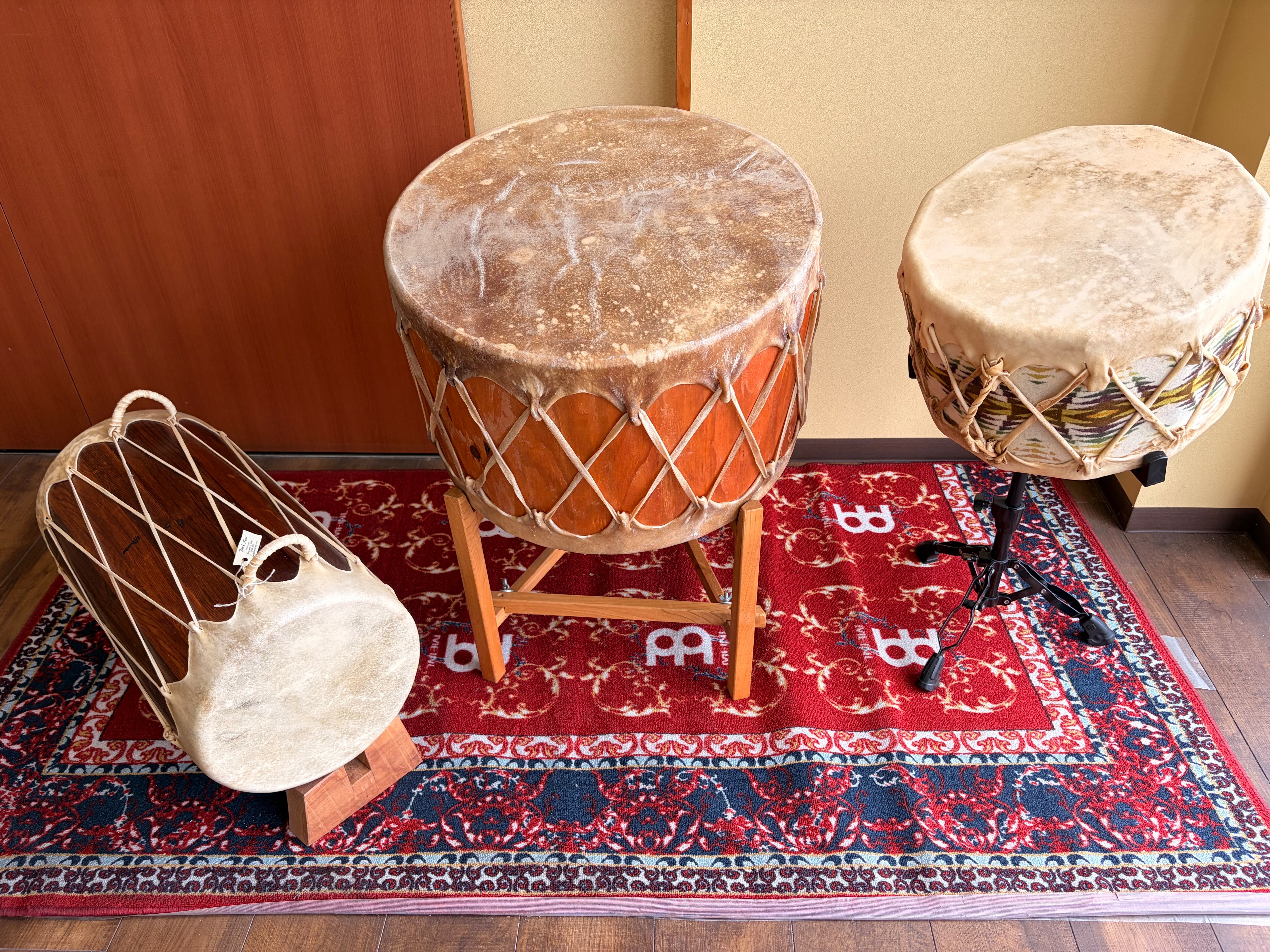 フープドラム、パウワウドラムのサウンドは、鹿や牛の違いはあっても共に生皮です。